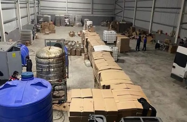 Ekipler, daha sonra tesise baskın düzenledi. Fabrikada yapılan aramada; 3 bin 820 litre şişelenmiş etil alkol, 3 bin litre tank içerisinde etil alkol, 90 bin adet kapak, 310 bin adet sahte marka, etiket ve barkod, 25 bin adet 1 litrelik boş şişe, 150 bin adet karton koli, 2 adet ısıtma kazanı, 2 adet 5 bin litrelik plastik tank, 1 adet şişeleme ve etiketleme makinesi ele geçirildi, 1 kamyonete de el koyuldu.